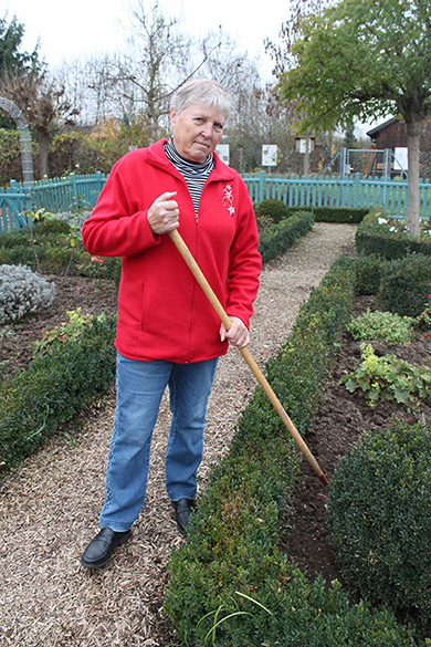Inge Rösch und Christa Sick haben den Rosengarten ein letztes Mal „winterfest“ gemacht. Sie haben ihm das „Winterkleid“ angezogen, indem sie den Boden aufgelockert („gschort“) und die Veredelungspunkte mit Erde angehäufelt haben, um Frostschäden zu vermeiden. Ja, und „umgraben ist nicht gleich umgraben“. Es kommt auf die „Spatenführung“ an, damit das Unkraut im nächsten Jahr nicht noch kräftiger wächst. Inge Rösch hat die Technik des „Schorens“ wie man in Hockenheim auch sagt, als junge Frau in der Landfrauenschule Tauberbischofsheim gelernt. Nun legt sie mit knapp 82 Jahren Rosenschere und Spaten aus der Hand.