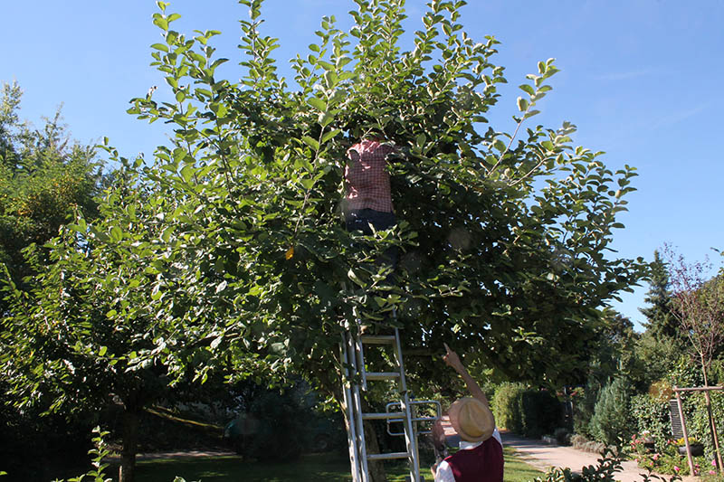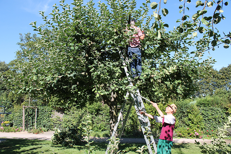 Sommerschnitt auf der Streuobstwiese beim Forstpavillon mit Rudi Mergenthaler vom Obst- und Gartenbauverein und Dieter Schumann.