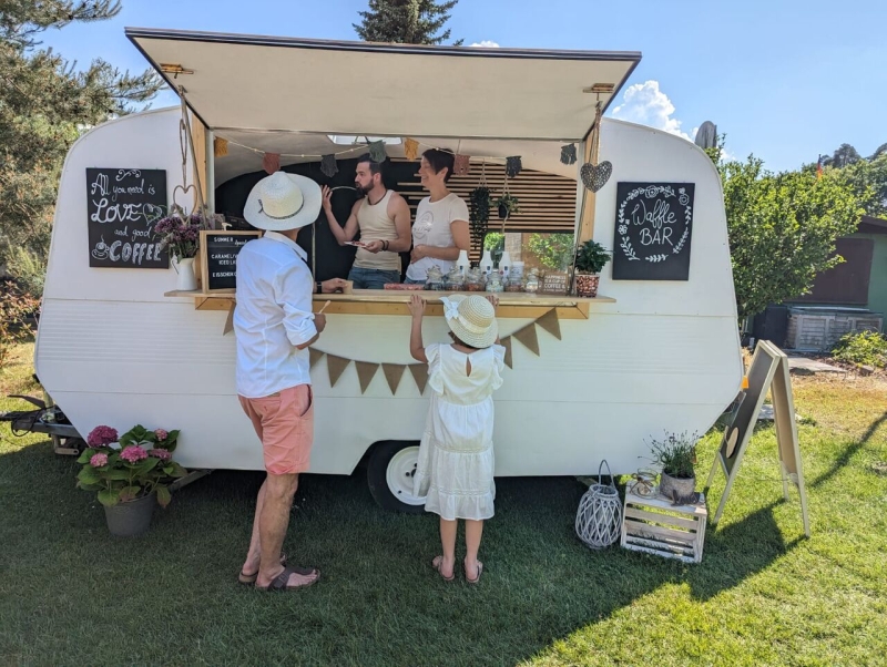 Am Anfang war es nur ein Traum….Der Traum von einem guten Kaffee auf dem Spielplatz während die Kinder spielen…Und als die „Zeit reif war“, machte ich mich auf die Suche – und fand Moritz! Einen kleinen alten Wilk 375, Bj. 1973. Nach einer Umbauzeit wurde aus Moritz ein wunderschönes kleines Wohnwagen-Cafè. Und gemeinsam sind wir jetzt unterwegs, um den Traum von gutem Kaffee und leckeren Waffeln auf dem Spielplatz im Hockenheimer Gartenschaupark Wirklichkeit werden zu lassen, so Conny Trebing.