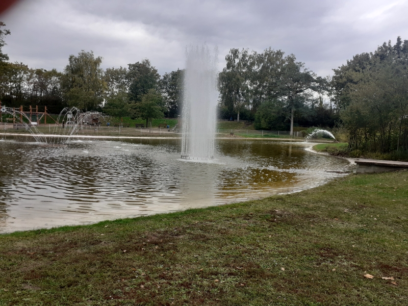 Nach der Reparatur sind die Wasserspiele beim großen Kinderspielplatz wieder in Betrieb und versorgen die Fische wieder mit Sauerstoff