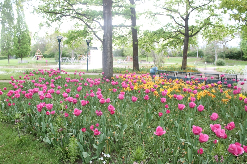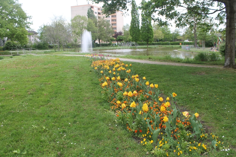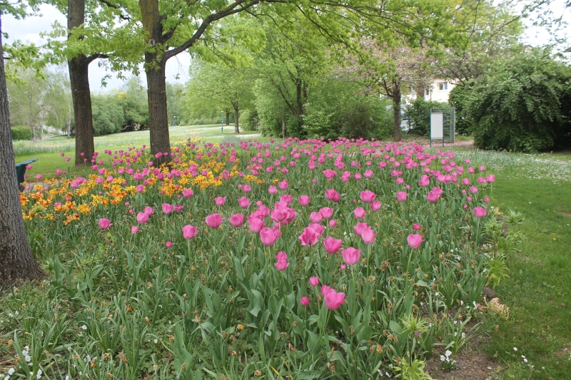 Die Narzissen sind verblüht, die Tulpensaison ist eröffnet Eingefügt am 18. April 2024 Tulpenblüte im Stiegwiesenpark. Die Tulpensaison ist eröffnet, hier beim Wasserplatz.