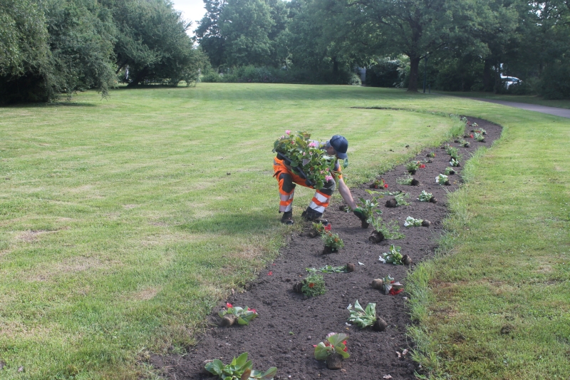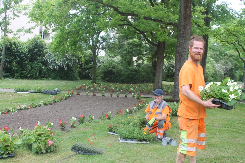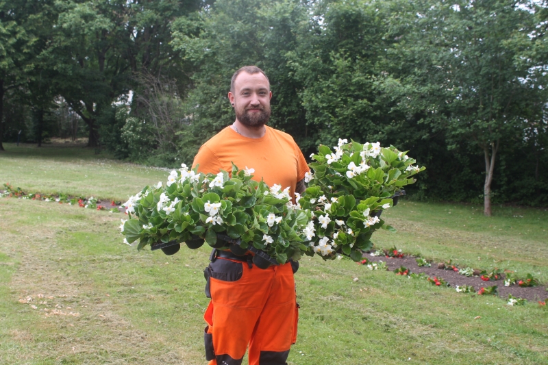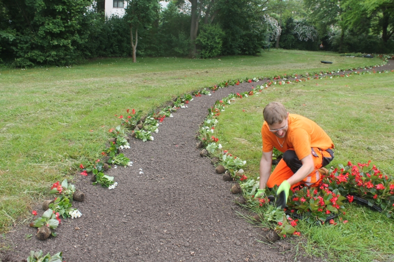 Die neuen Sommerpflanzen werden ausgetopft und verteilt