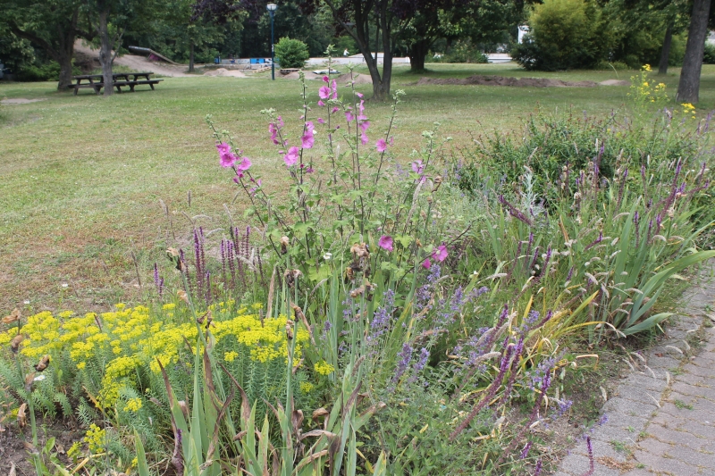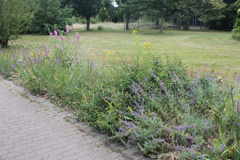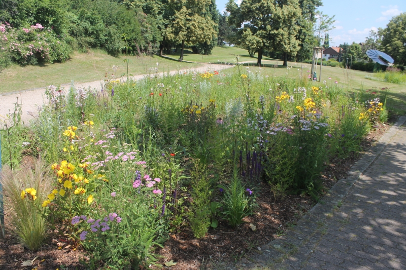Der Sommer steht vor der Tür Eingefügt am 15. Juni 2024 Die Staudenbeete haben Saison. Sommerflor in den Wechselbeeten. Extensive Fläche: Ein Eldorado für Bienen und allerlei Insekten.