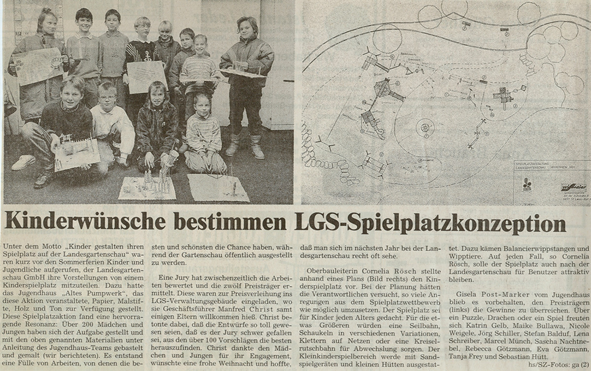 Folgend finden Sie zwei historische Zeitungsartikel aus dem Jahre 1990 und der damaligen Berichterstattung bezüglich des Kinderspielplatzes: