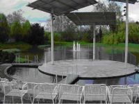 Im Herzen des Stiegwiesenparks befindet sich der 1400 qm große See mit der 70 qm großen Seebühne.