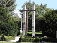 Ein Mahnmahl gegen den Krieg und ein Kreuz der Versöhnung, wobei der Querbalken des Kreuzes symbolhaft beide Länder – Steinsäulen – miteinander verbindet.